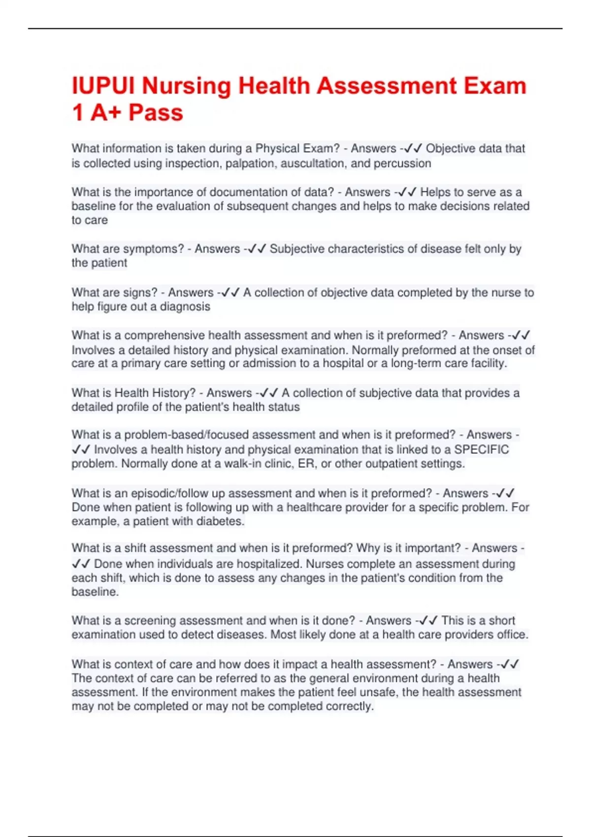 What is Health History? - Answers -✔✔ A collection of subjective data that provides a
