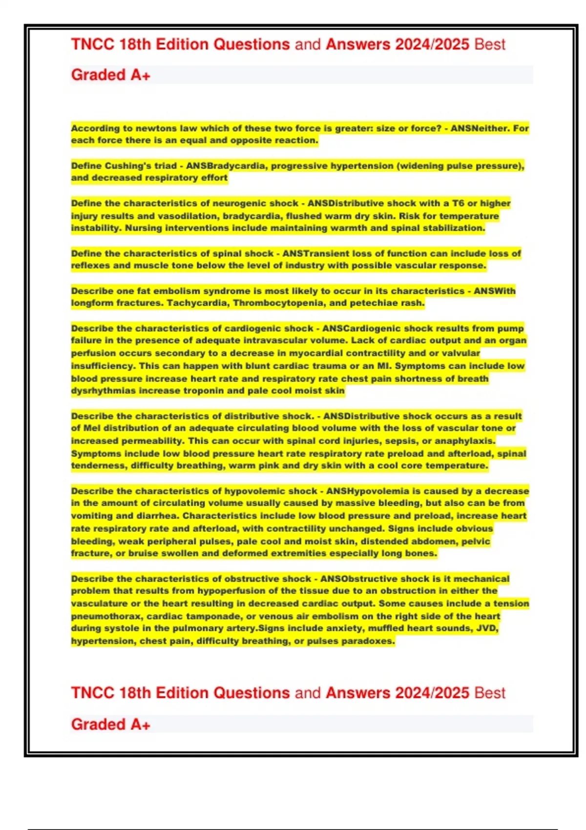 , TNCC 18th Edition Questions and Answers 2024/2025 Best