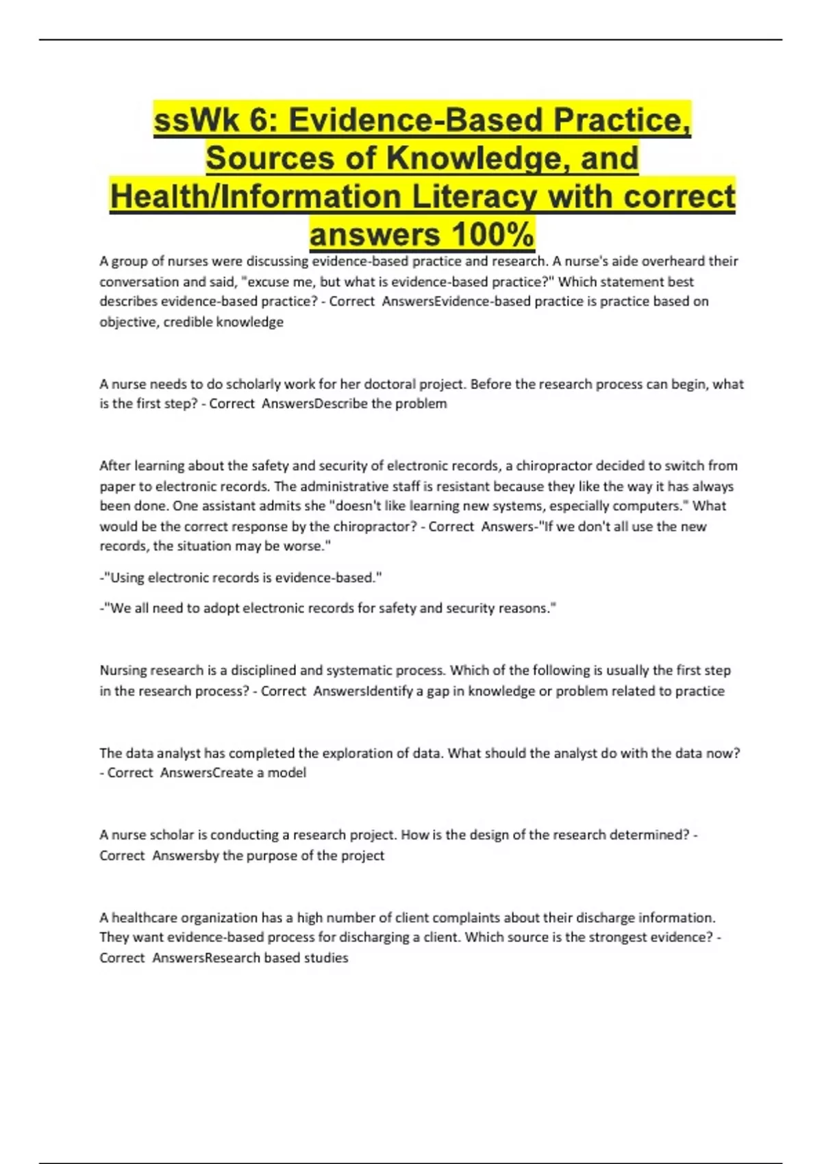describes evidence-based practice? - Correct AnswersEvidence-based practice is practice based on