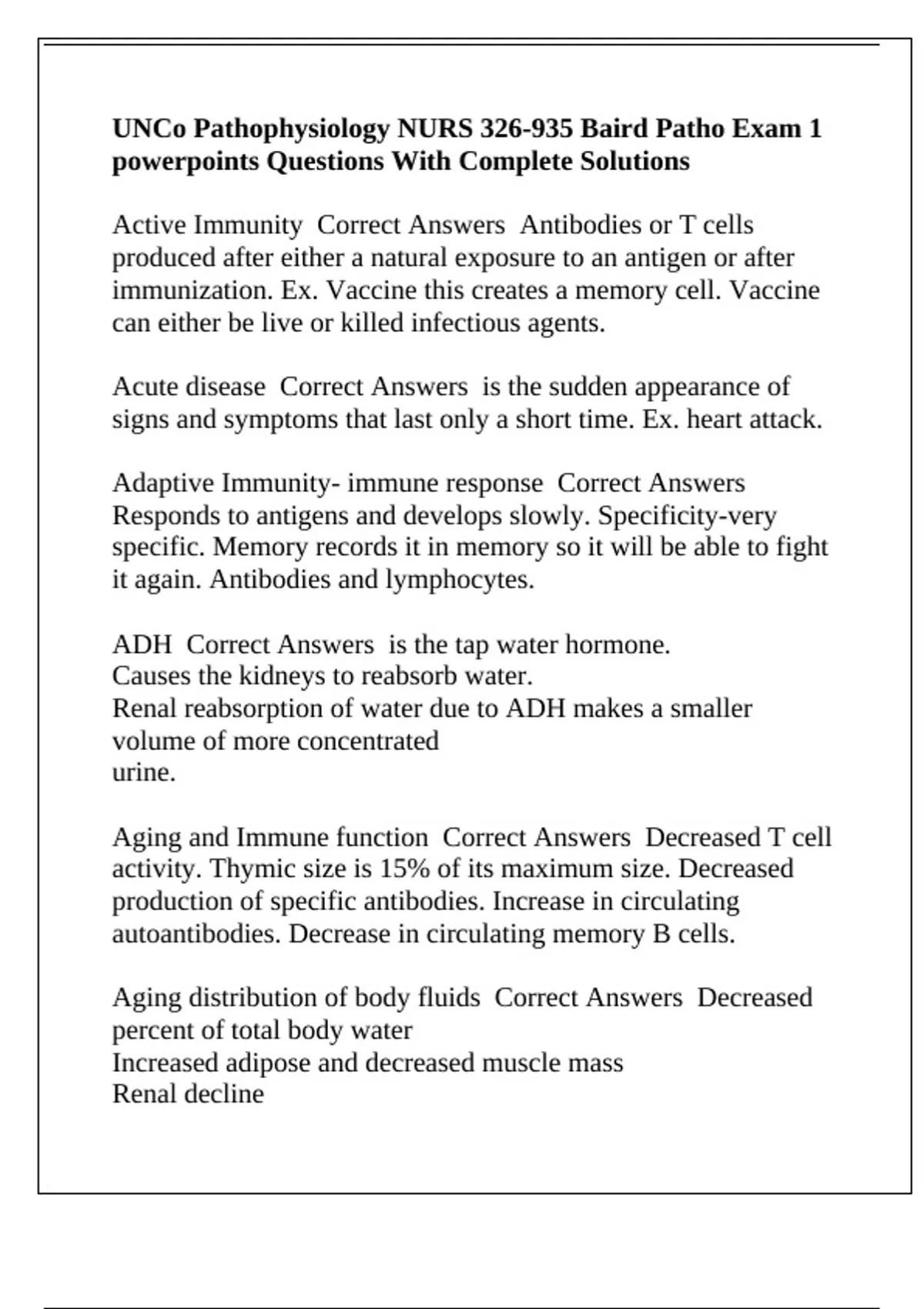 Aging distribution of body fluids Correct Answers Decreased