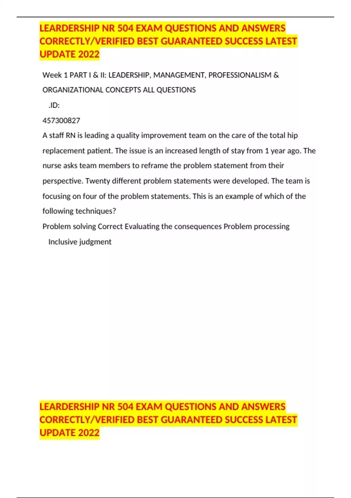 LEARDERSHIP NR 504 EXAM QUESTIONS AND ANSWERS