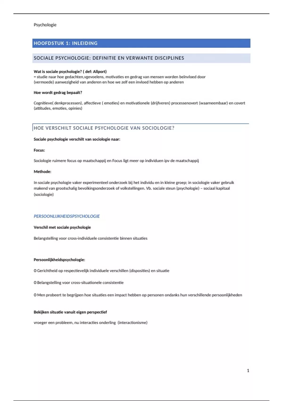 SOCIALE PSYCHOLOGIE: DEFINITIE EN VERWANTE DISCIPLINES