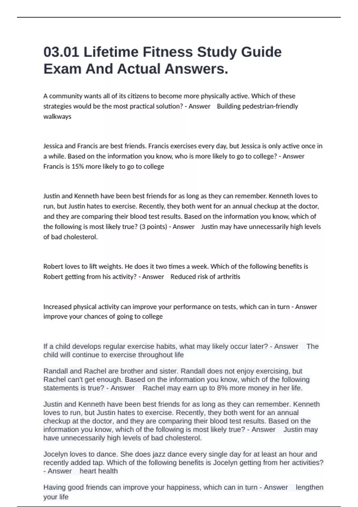 03.01 Lifetime Fitness Study Guide Exam And Actual Answers.