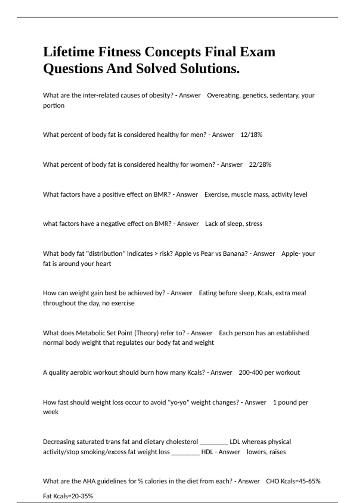 Lifetime Fitness Concepts Final Exam Questions And Solved Solutions.