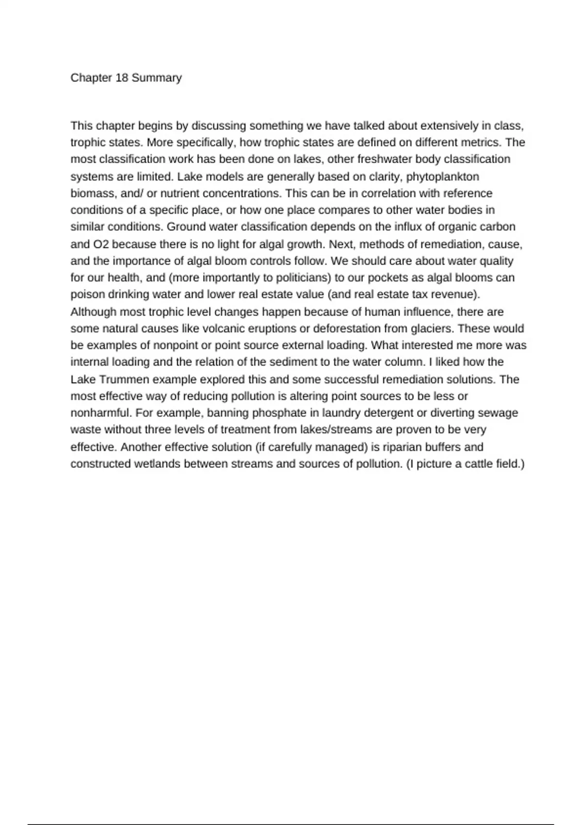 internal loading and the relation of the sediment to the water column. I liked how the