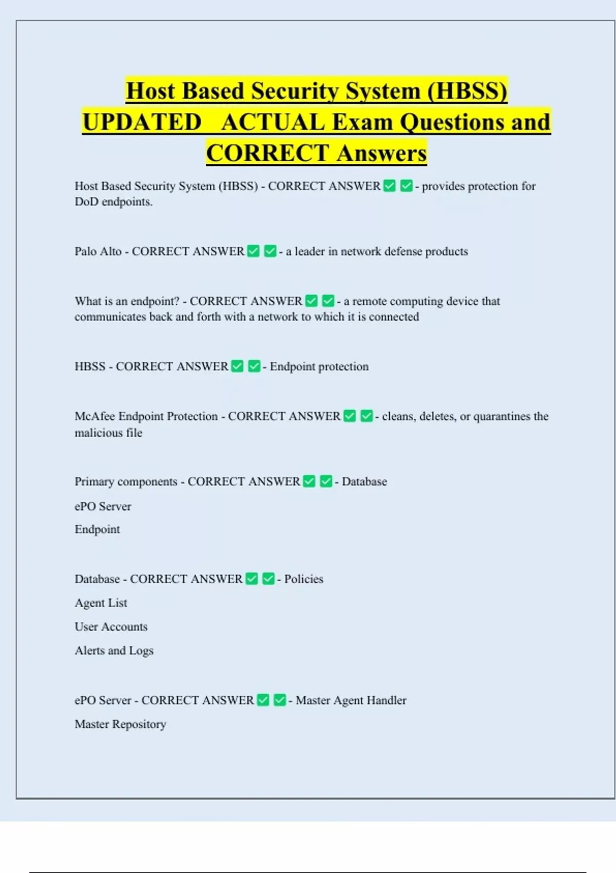 Host Based Security System (HBSS) - CORRECT ANSWER - provides protection for