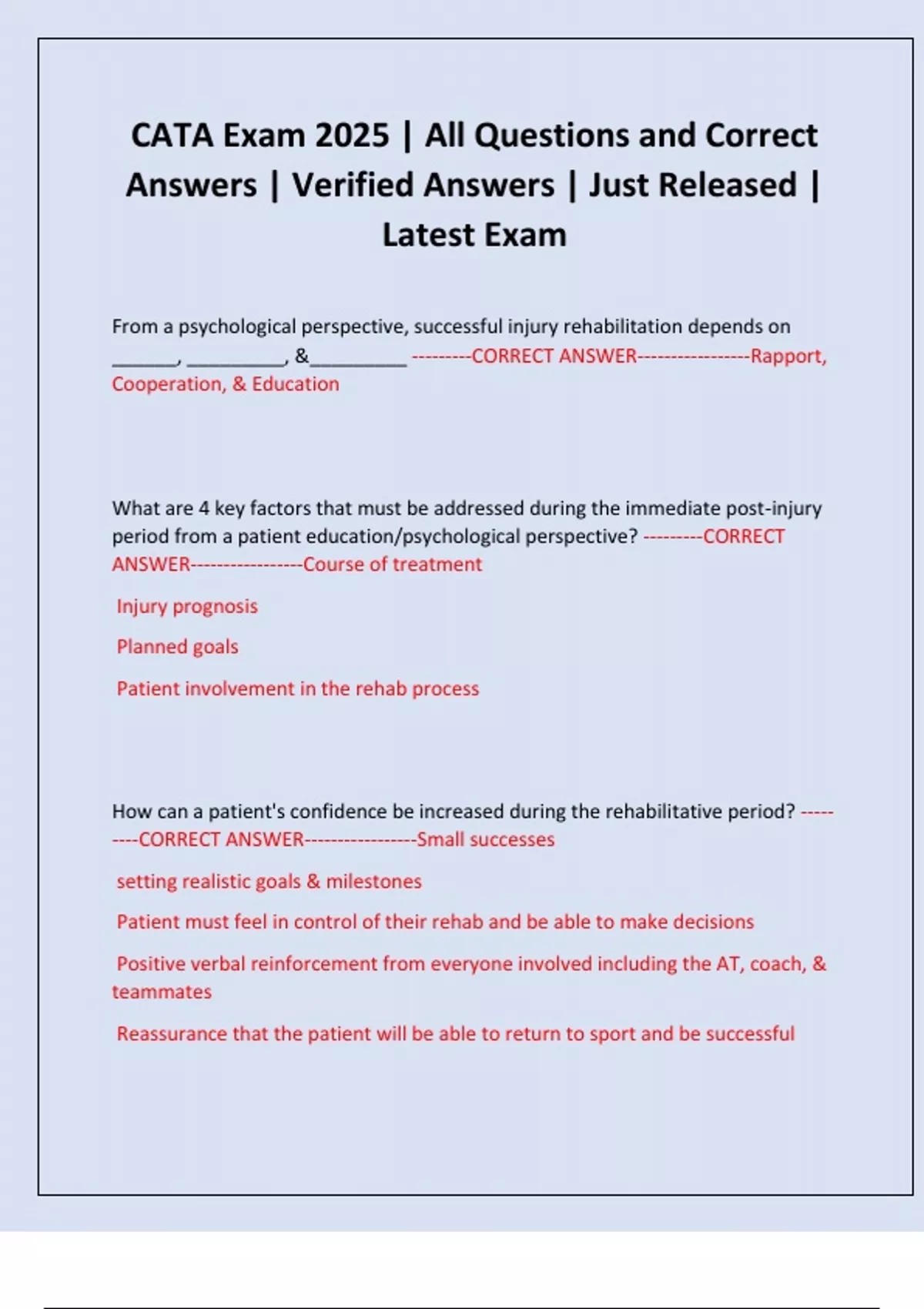 rehabilitation of an injury ---------CORRECT ANSWER-----------------Goal setting