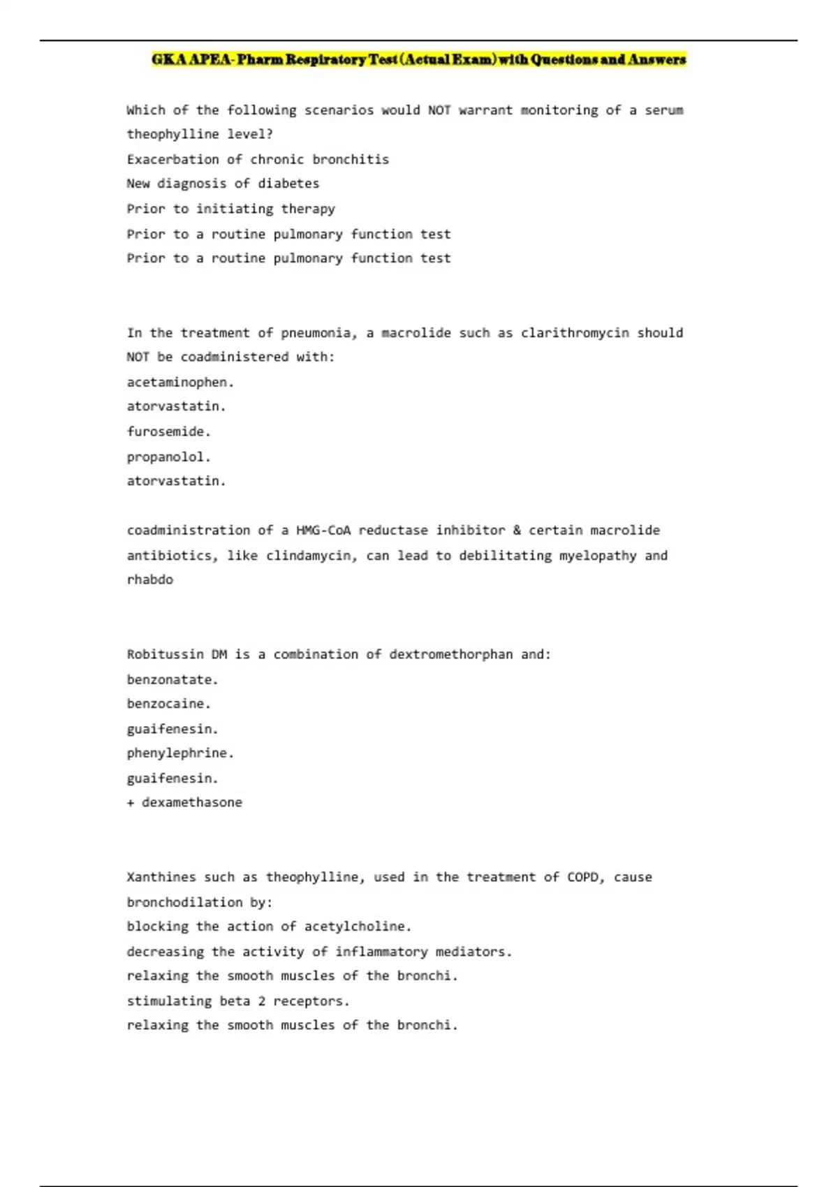 GKA APEA- Pharm Respiratory Test (Actual Exam) with Questions and Answers