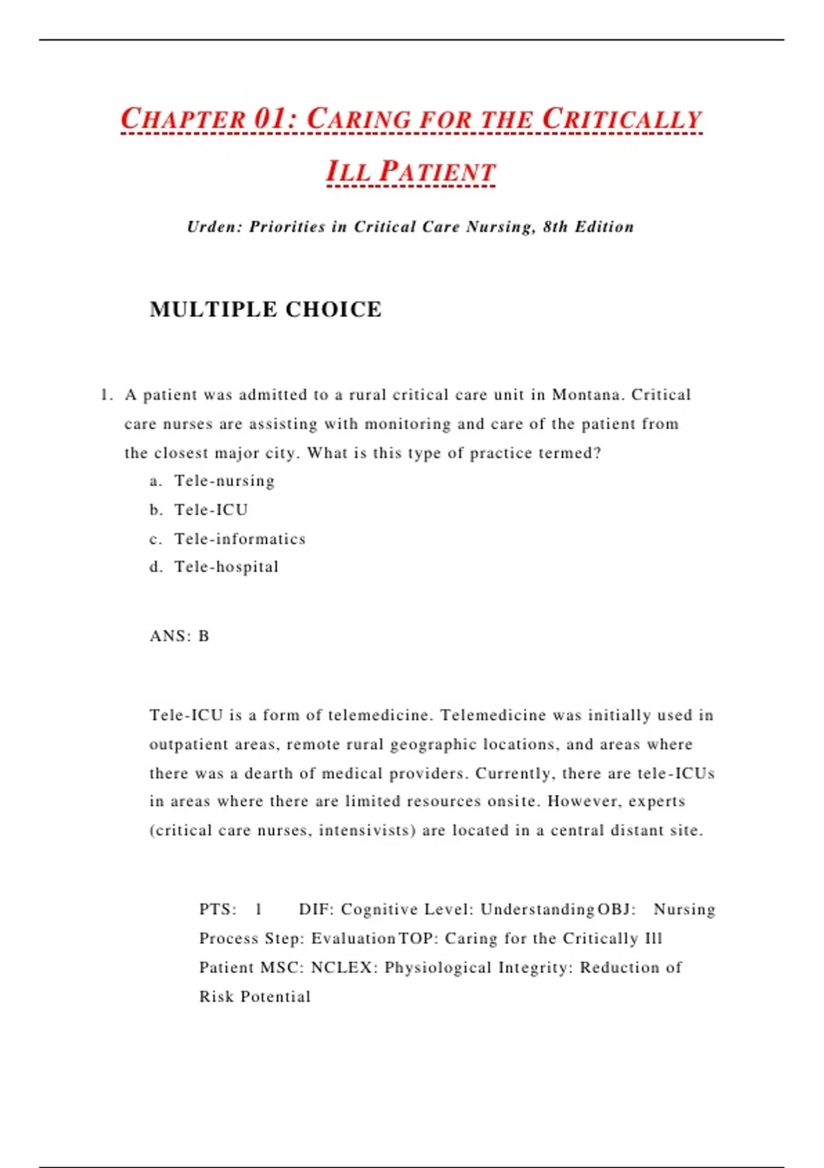 1. A patient was adm itted to a rural critical care unit in Montana. Critical