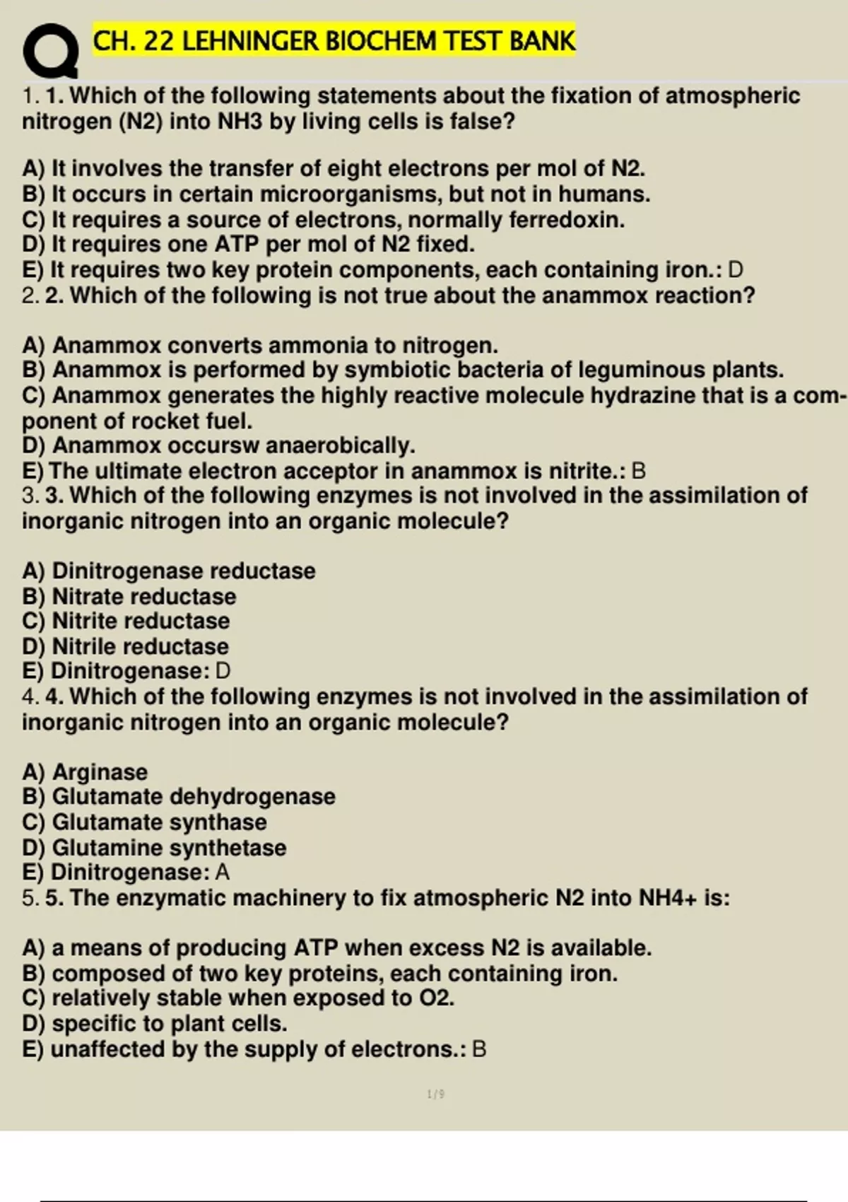 , CH. 22 LEHNINGER BIOCHEM TEST BANK