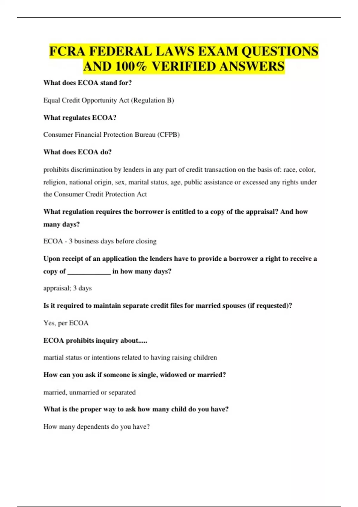 FCRA FEDERAL LAWS EXAM QUESTIONS