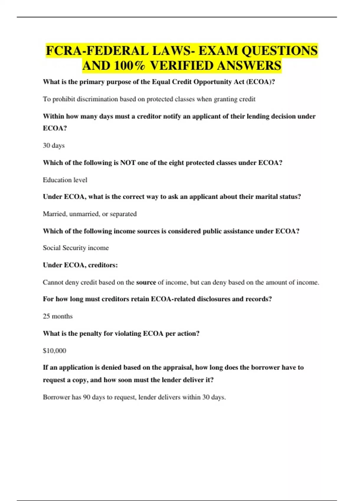 FCRA-FEDERAL LAWS- EXAM QUESTIONS AND 100% VERIFIED ANSWERS