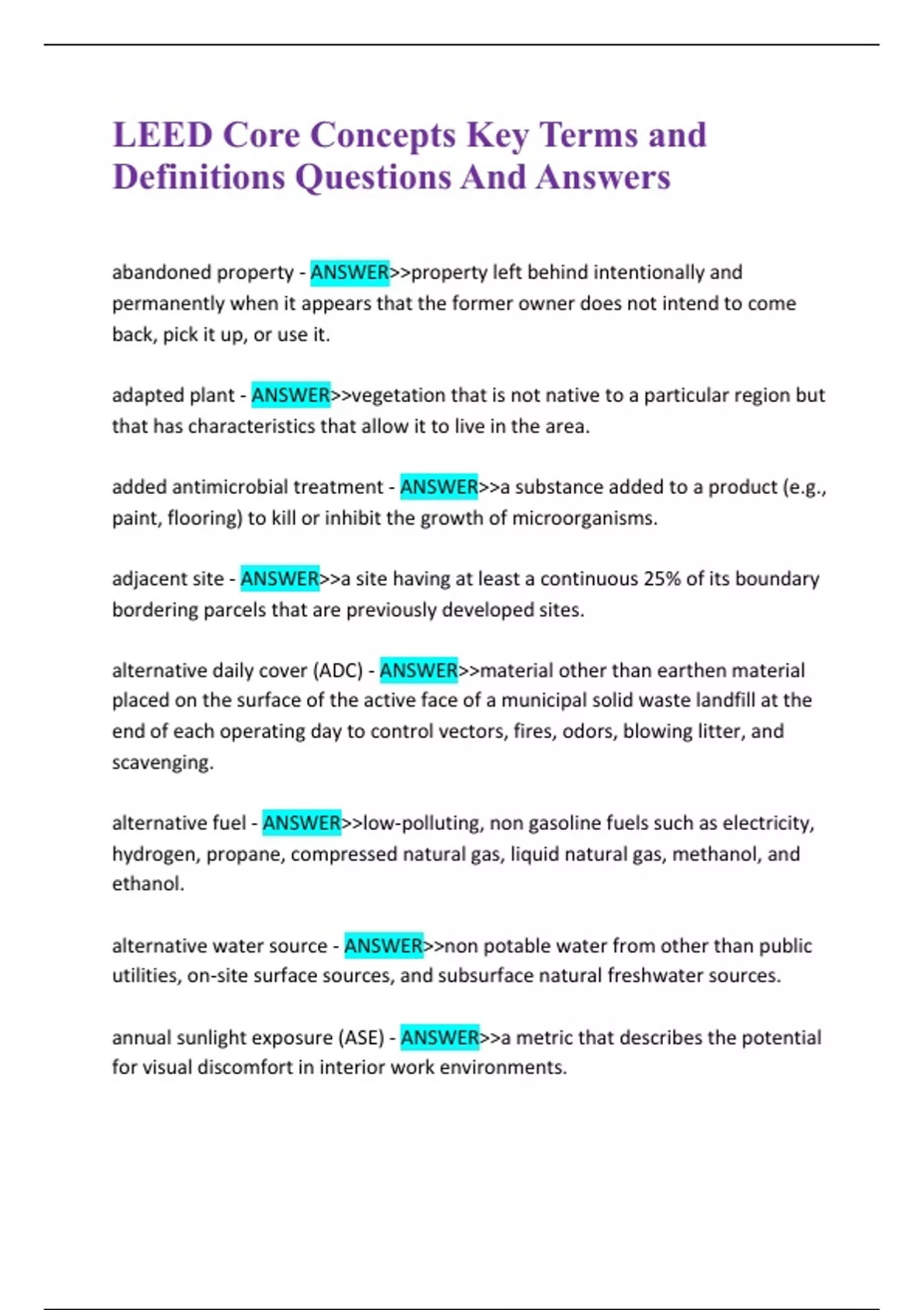 LEED Core Concepts Key Terms and
