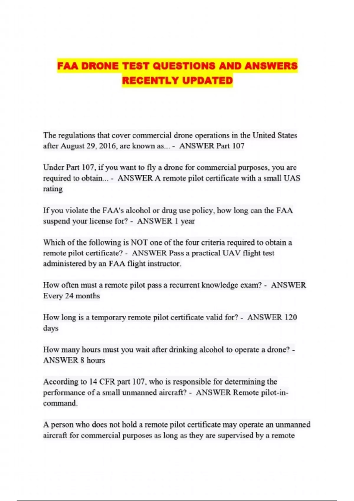 FAA DRONE TEST QUESTIONS AND ANSWERS RECENTLY UPDATED....