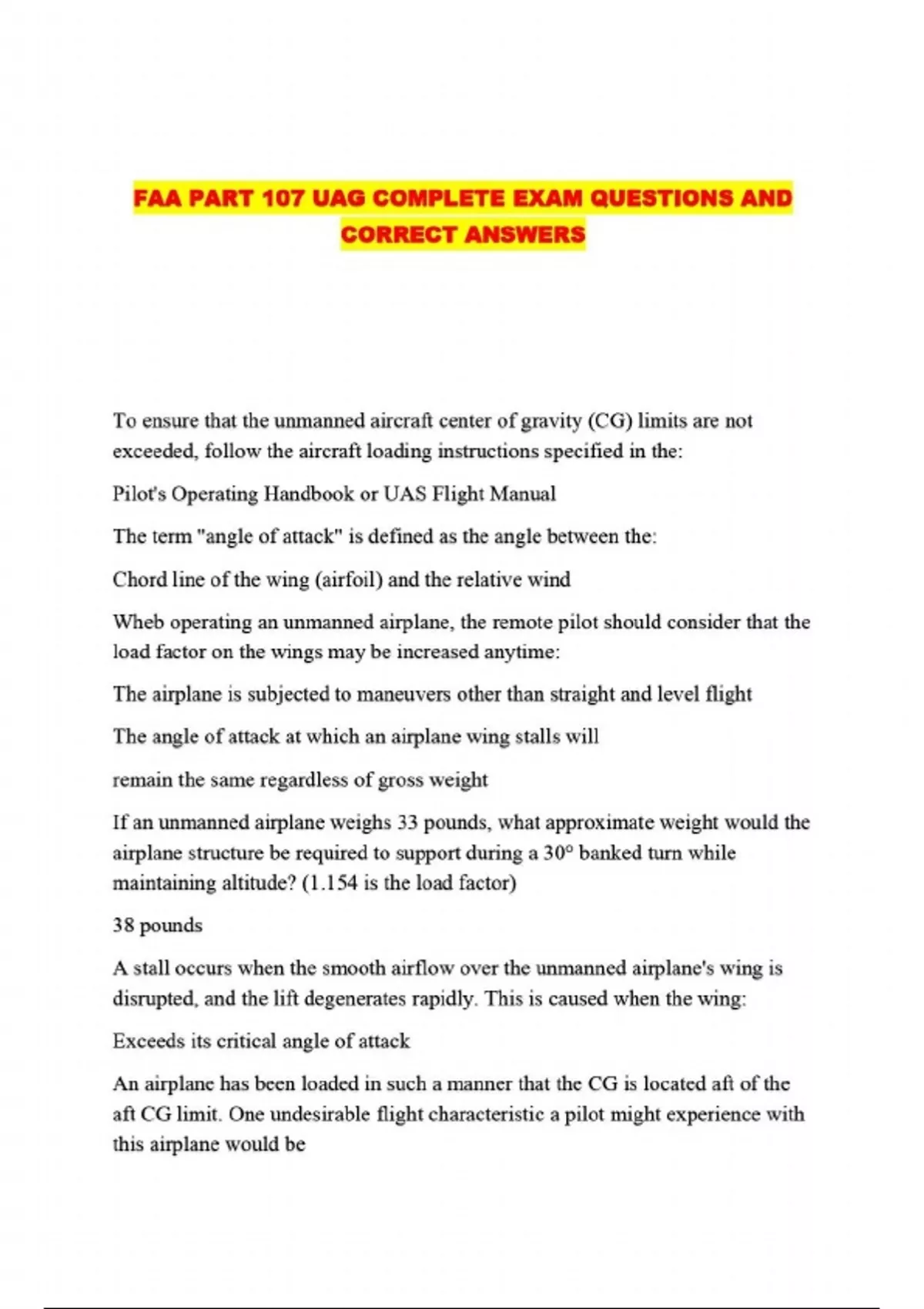 FAA PART 107 UAG COMPLETE EXAM QUESTIONS AND CORRECT ANSWERS...