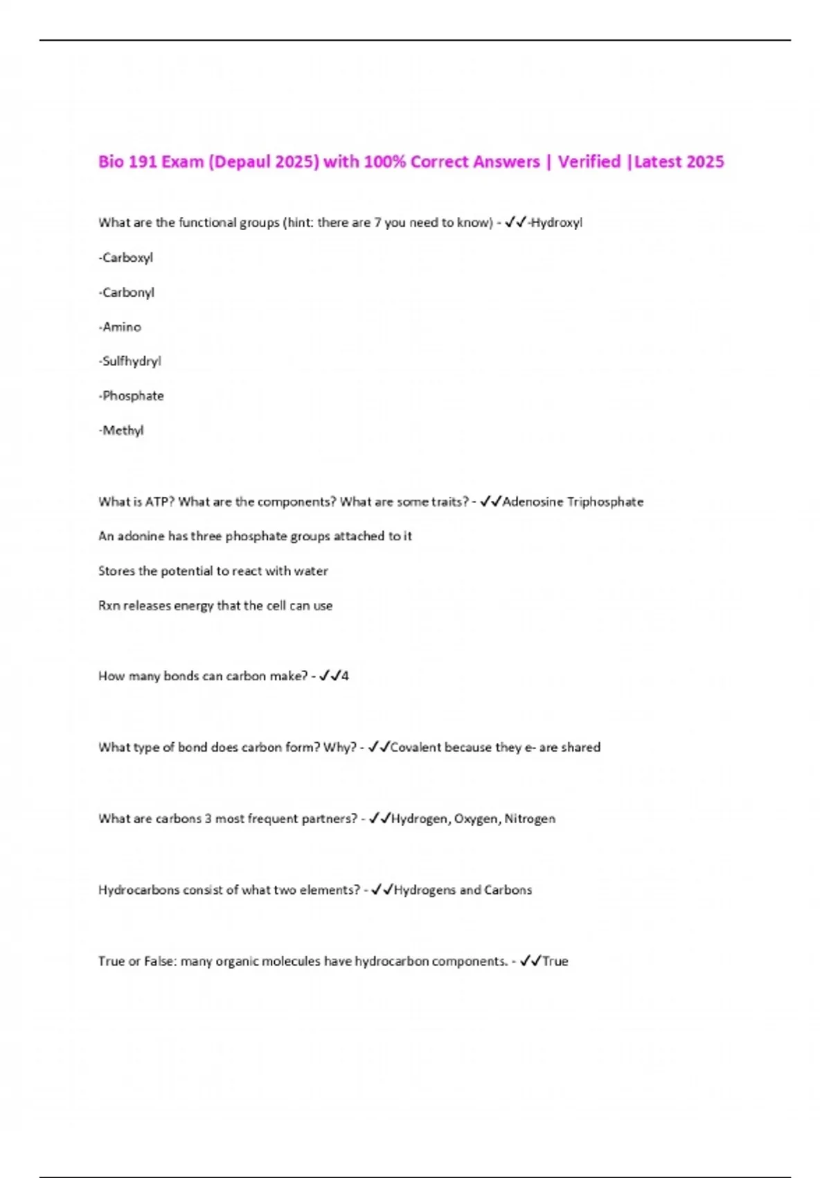 Bio 191 Exam (Depaul 2025) with 100% Correct Answers | Verified |Latest 2025
