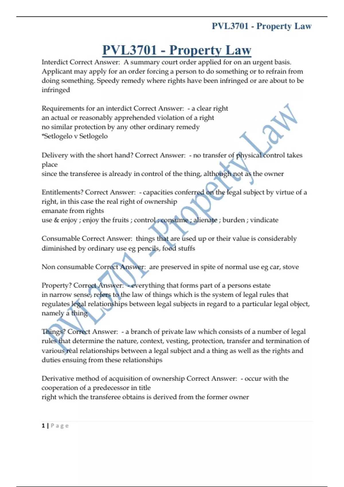 PVL3701 - Property Law