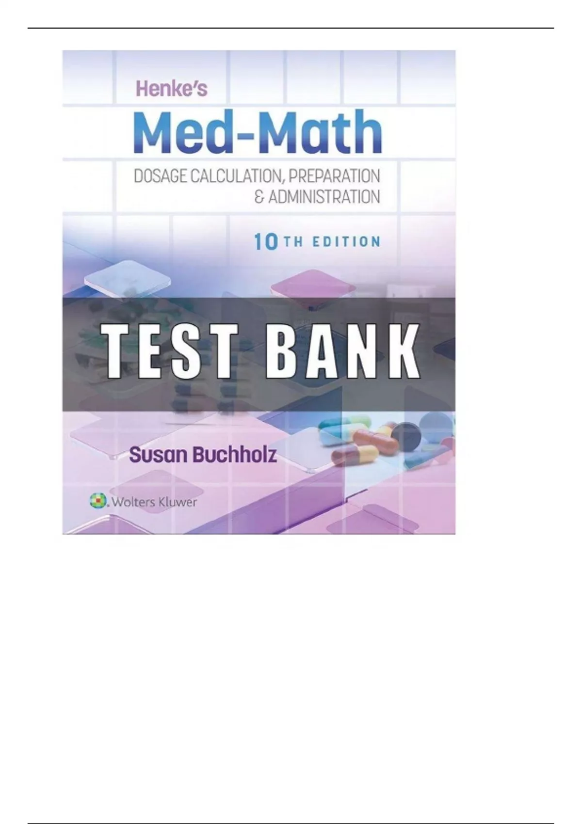 Test Bank - Henke's Med-Math Dosage-Calculation, Preparation, and Administration, 10th Edition (Buchholz, 2023), Chapter 1-10 | All ChaptersTest Bank - Henke's Med-Math Dosage-Calculation, Preparation, and Administration, 10th Edition (Buchholz, 2023), Chapter 1-10 | All Chapters
