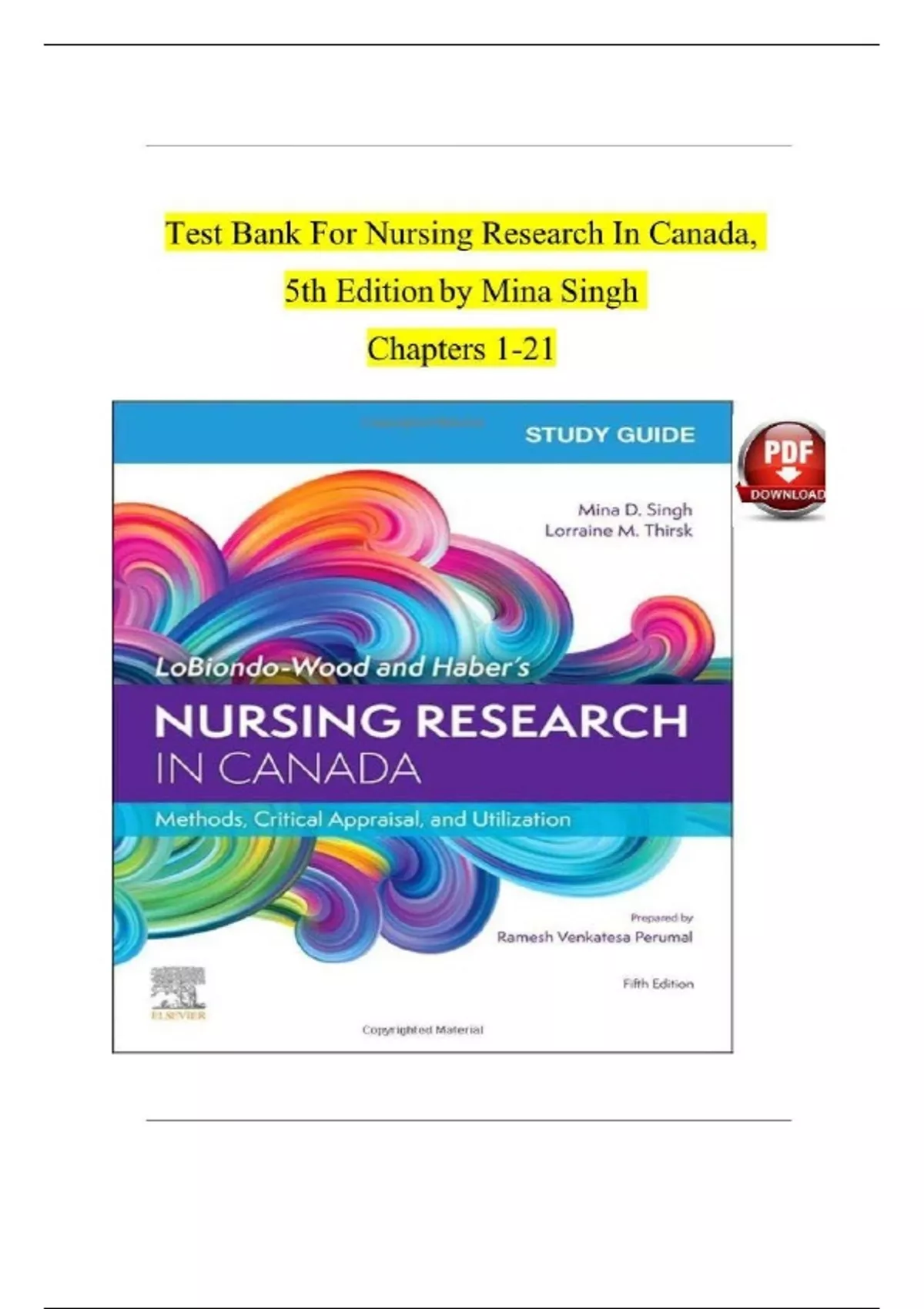TEST BANK For Nursing Research In Canada, 5th Edition by Mina Singh, Verified Chapters 1 - 21, Complete Newest Version nursingTEST BANK For Nursing Research In Canada, 5th Edition by Mina Singh, Verified Chapters 1 - 21, Complete Newest Version nursing