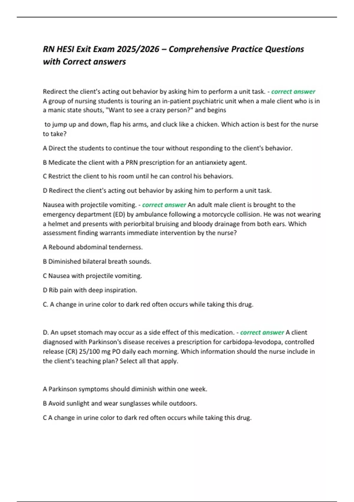 with Correct answers