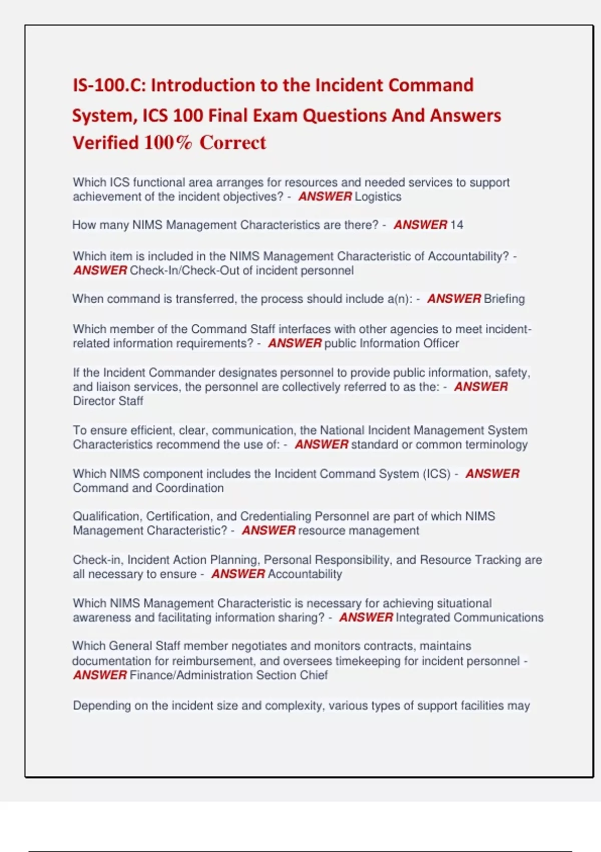 System, ICS 100 Final Exam Questions And Answers