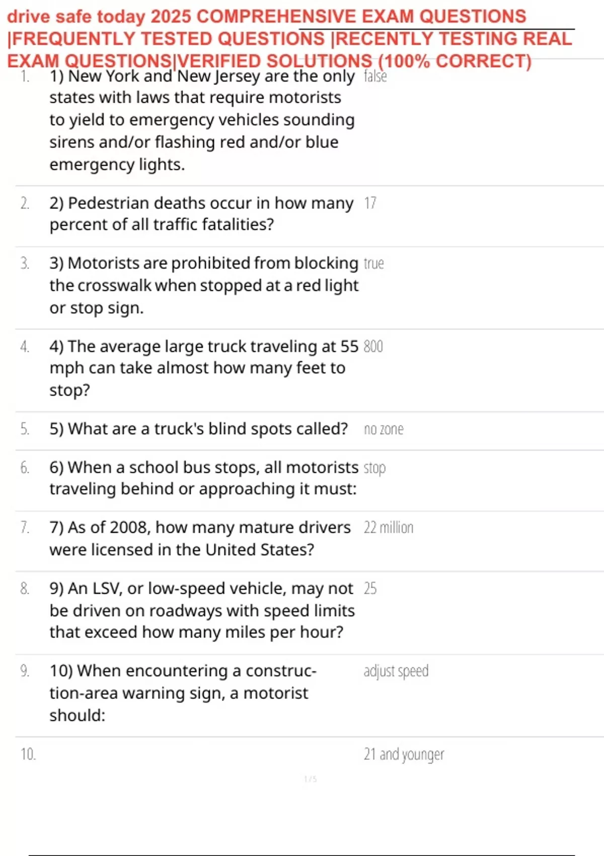 drive safe today 2025 COMPREHENSIVE EXAM QUESTIONS |FREQUENTLY TESTED QUESTIONS |RECENTLY TESTING REAL EXAM QUESTIONS|VERIFIED SOLUTIONS (100% CORRECT)