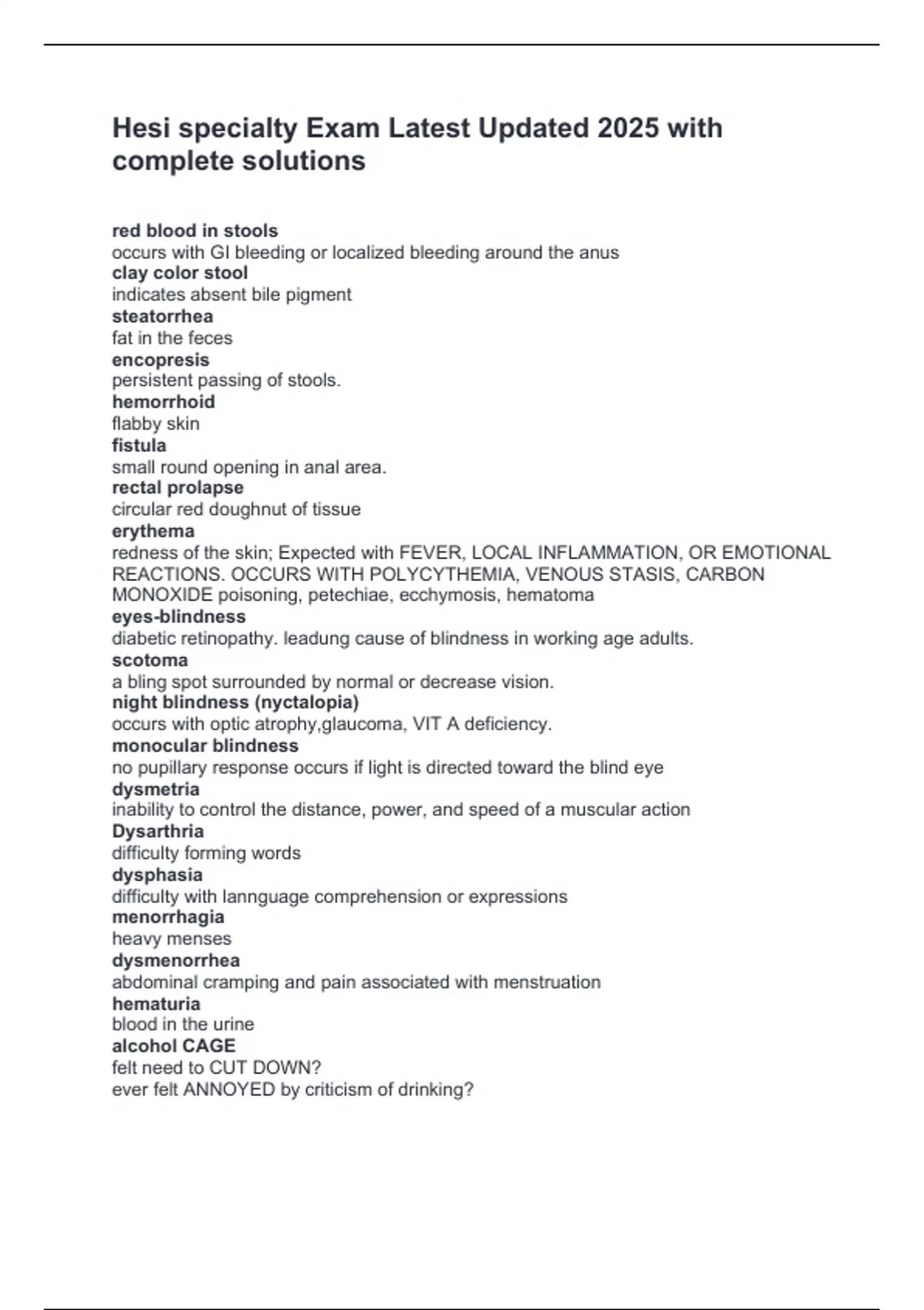 Hesi specialty Exam Latest Updated 2025 with complete solutions