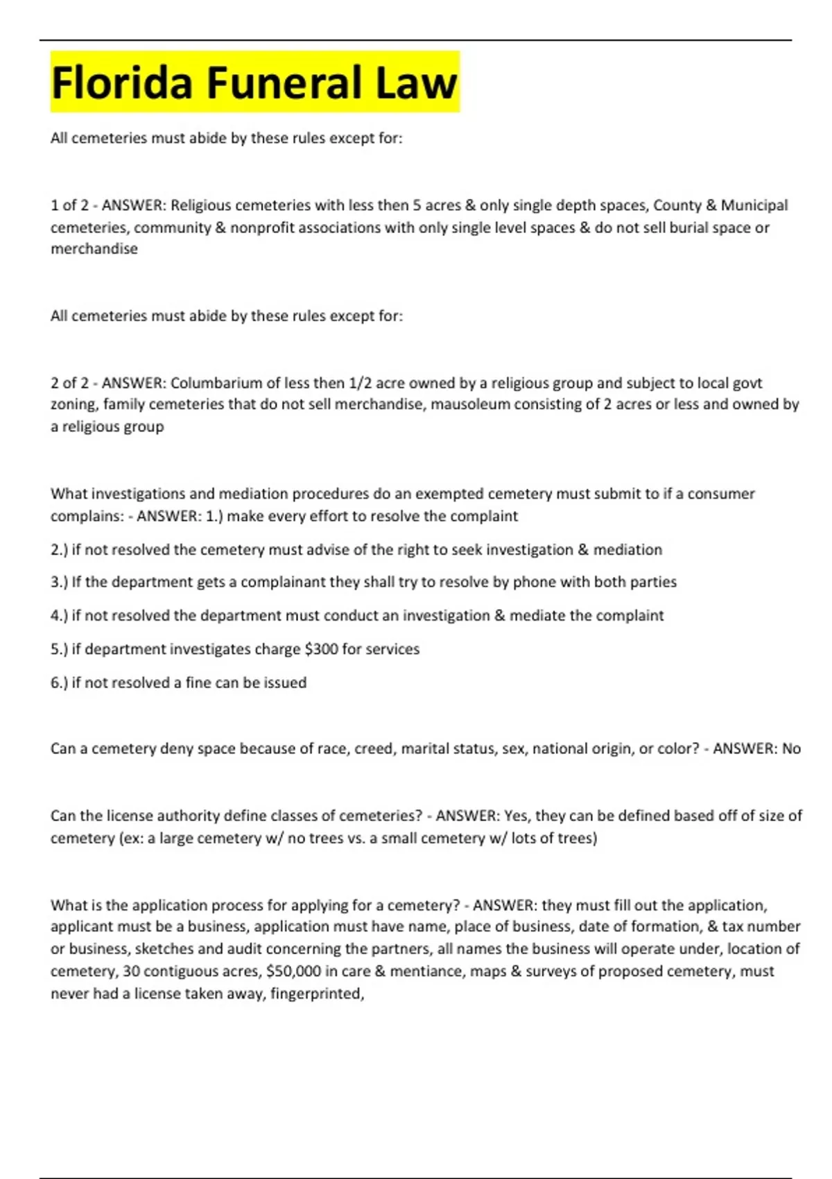 1 of 2 - ANSWER: Religious cemeteries with less then 5 acres & only single depth spaces, County & Municipal
