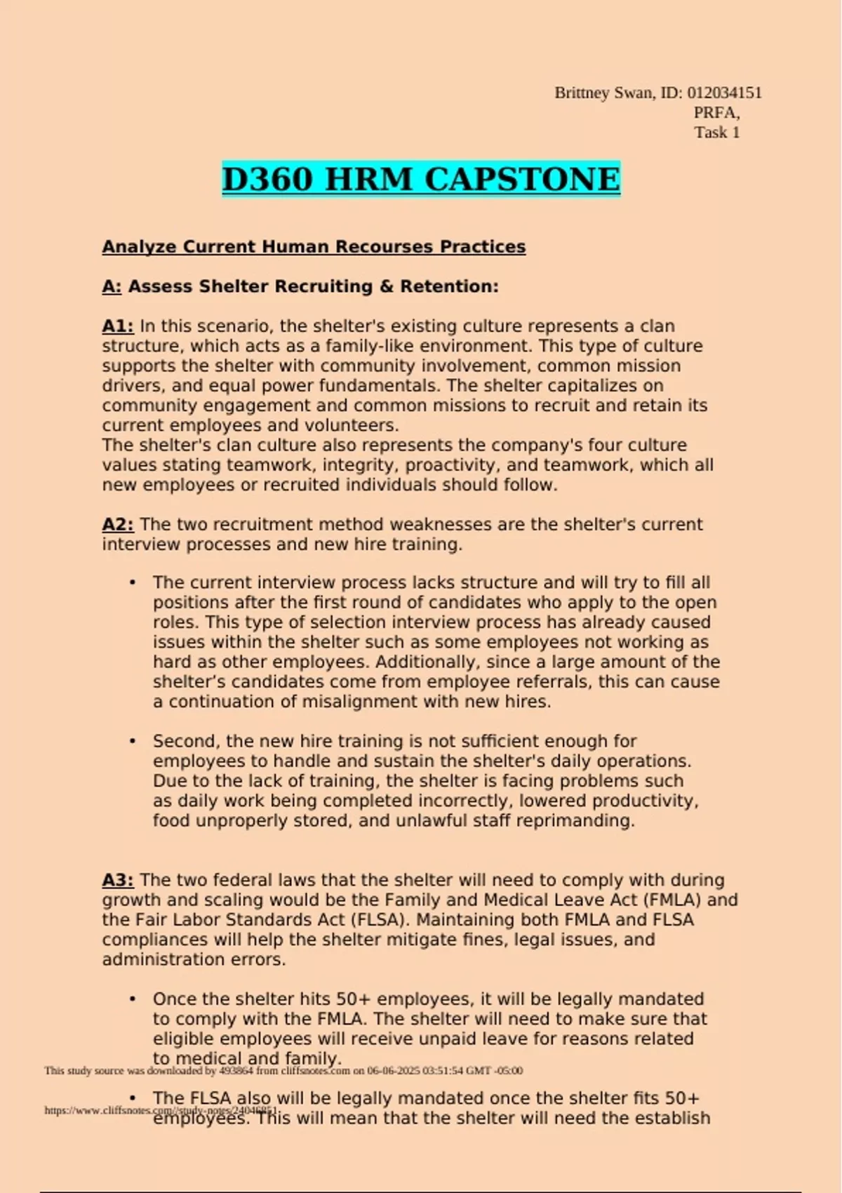 Exam of 7 pages for the course D360 HRM CAPSTONE at D360 HRM CAPSTONE (D360 HRM CAPSTONE)