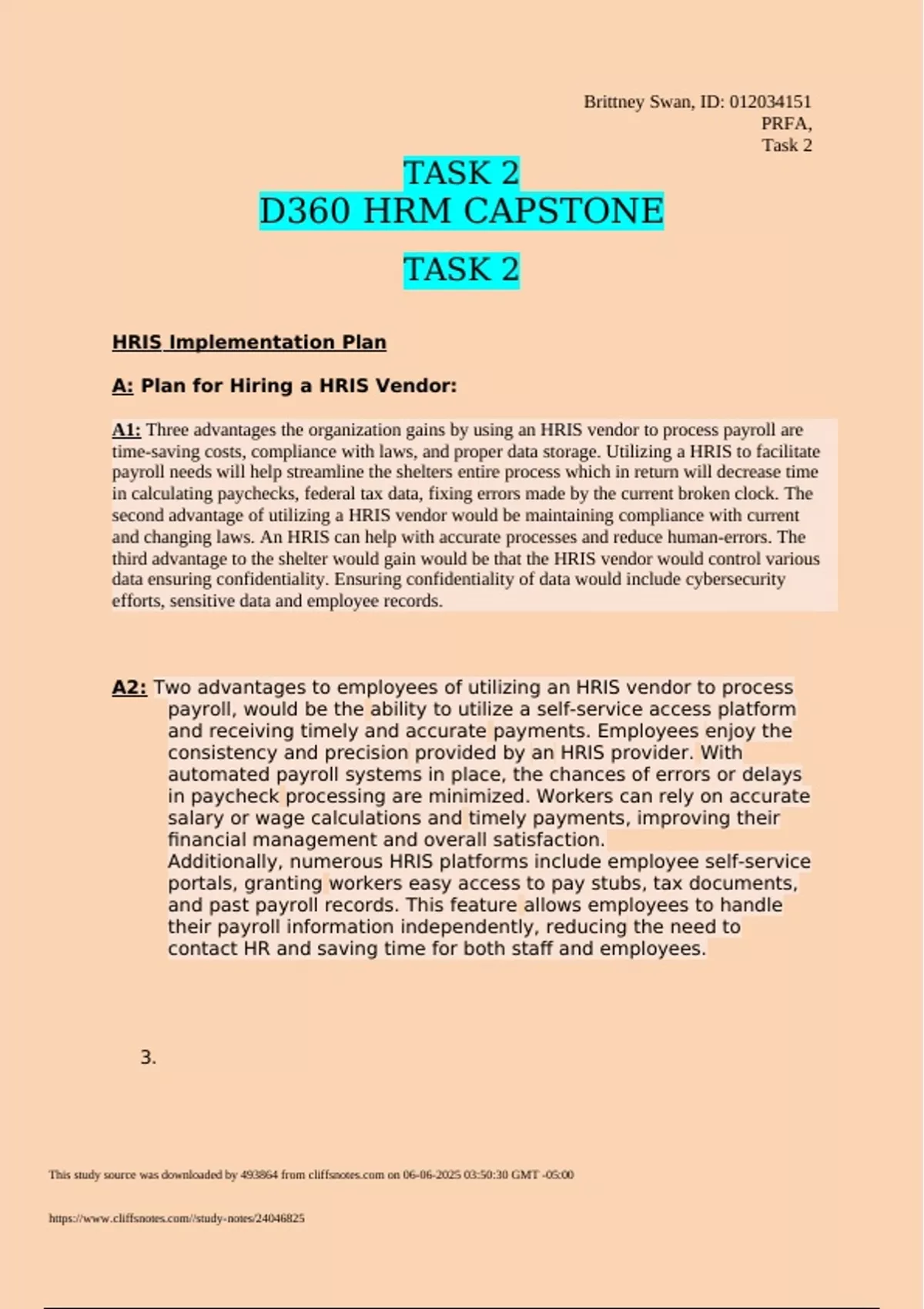 A1: Three advantages the organization gains by using an HRIS vendor to process payroll are