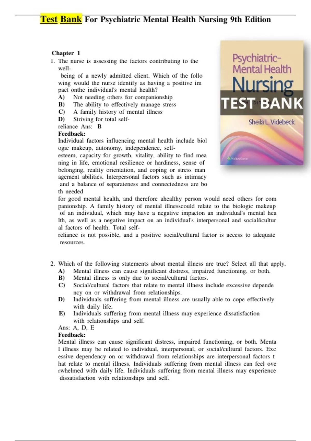 TEST BANK FOR Psychiatric Mental Health Nursing 9th Edition|ISBN 9781975184773| 100% VERIFIED | COMPLETE GUIDE | A+ GRADE ASSURED!!! LATEST UPDATE!!!!