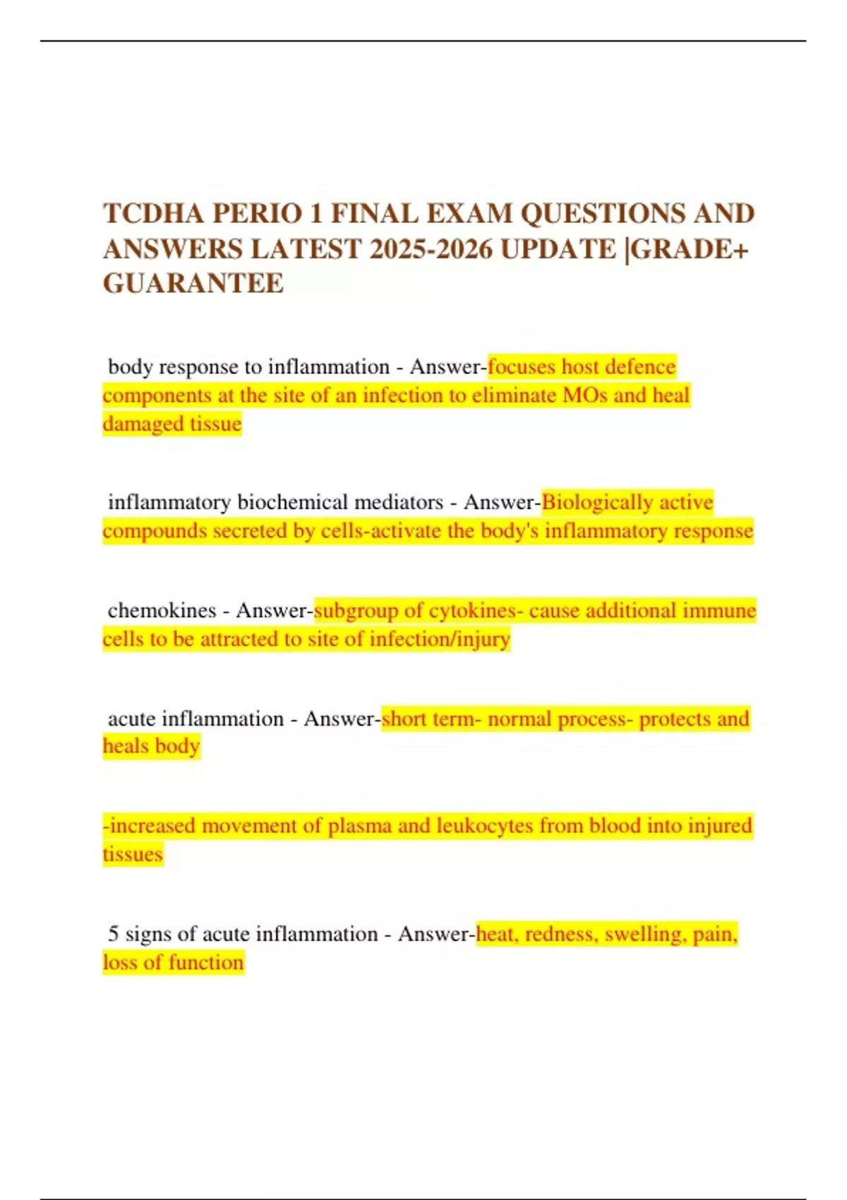 body response to inflammation - Answer-focuses host defence
