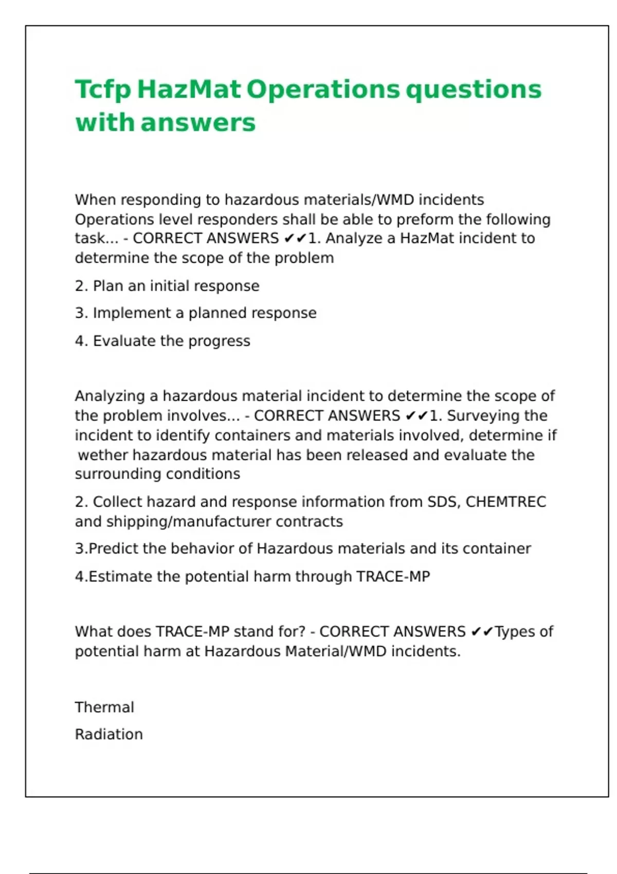 task... - CORRECT ANSWERS ✔✔1. Analyze a HazMat incident to