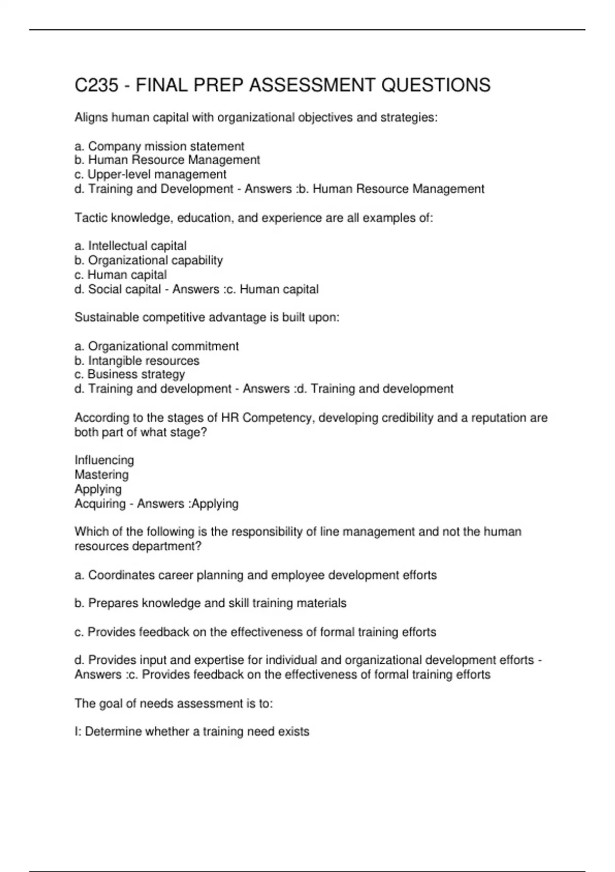 C235 - FINAL PREP ASSESSMENT QUESTIONS