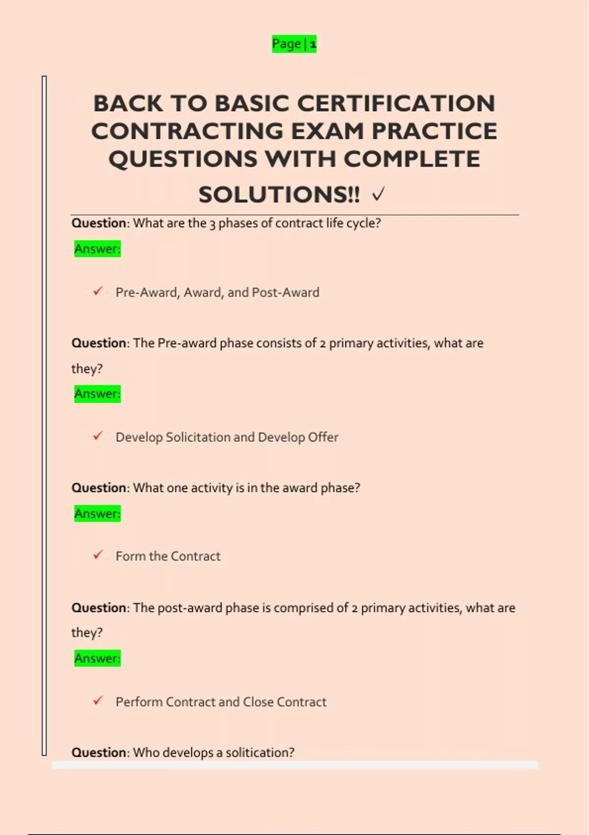BACK TO BASIC CERTIFICATION CONTRACTING EXAM PRACTICE QUESTIONS WITH COMPLETE SOLUTIONS!!