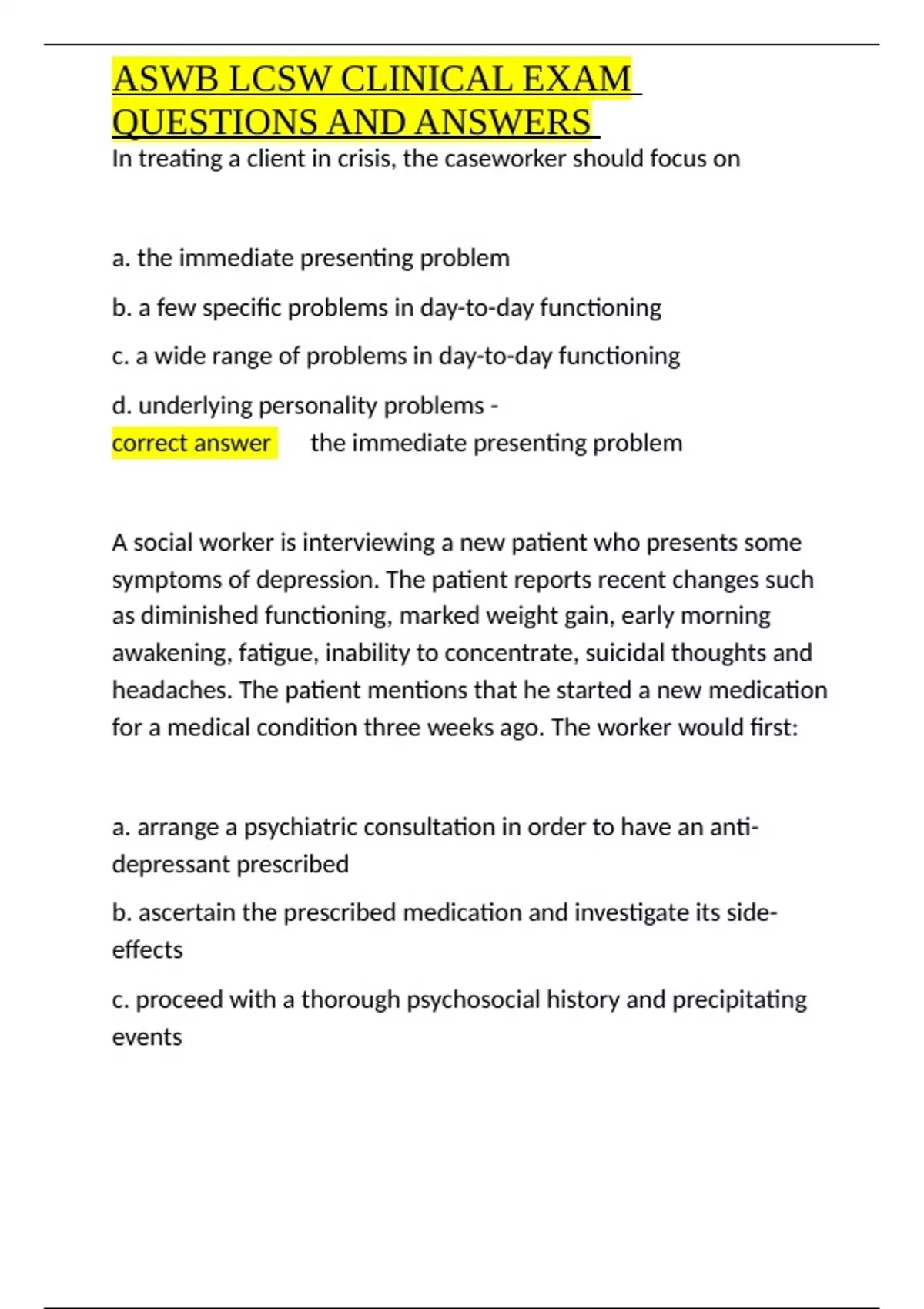 awakening, fatigue, inability to concentrate, suicidal thoughts and