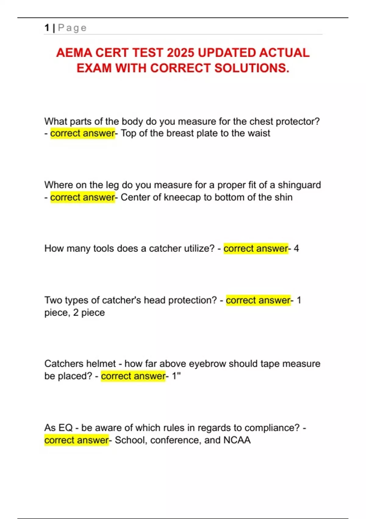 AEMA CERT Test – 2025 Updated Actual Exam with Correct Answers | Athletic Equipment Management Association | Full Compliance, Fitting & Safety Review