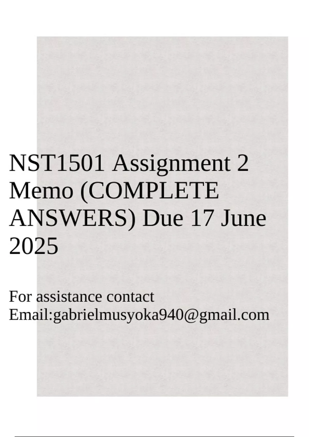 NST1501 Assignment 2 Memo (COMPLETE ANSWERS) Due 17 June 2025