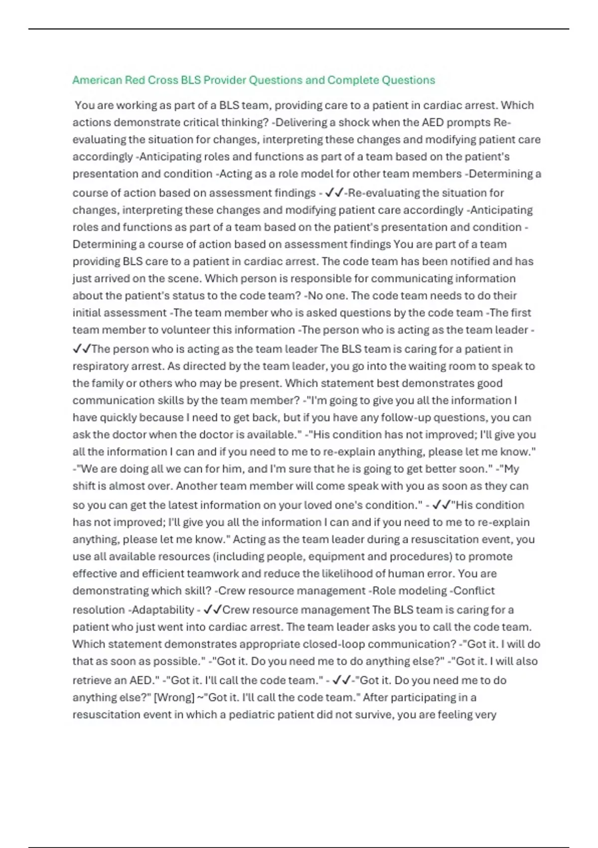 American Red Cross BLS Provider Questions and Complete Questions