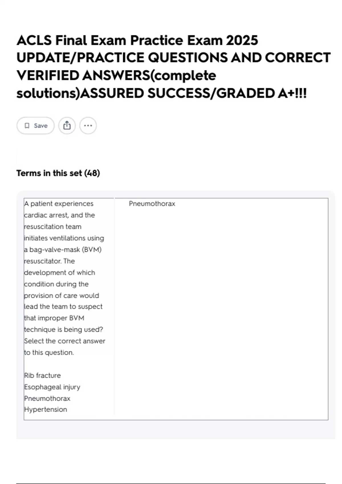 ACLS Final Exam Practice Exam 2025 UPDATE/PRACTICE QUESTIONS AND CORRECT VERIFIED ANSWERS(complete solutions)ASSURED SUCCESS/GRADED A+!!!