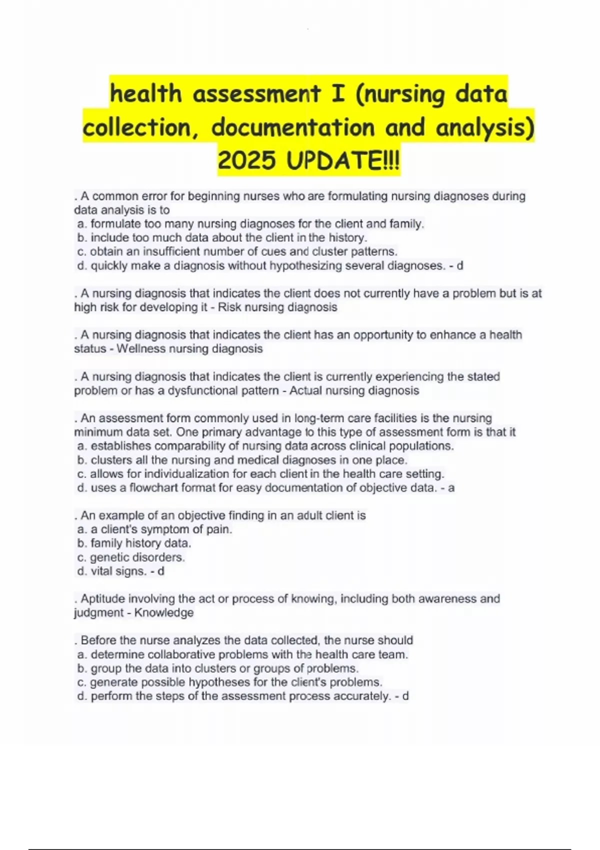 health assessment I (nursing data collection, documentation and analysis) 2025 UPDATE!!! health assessment I (nursing data collection, documentation and analysis) 2025 UPDATE!!!