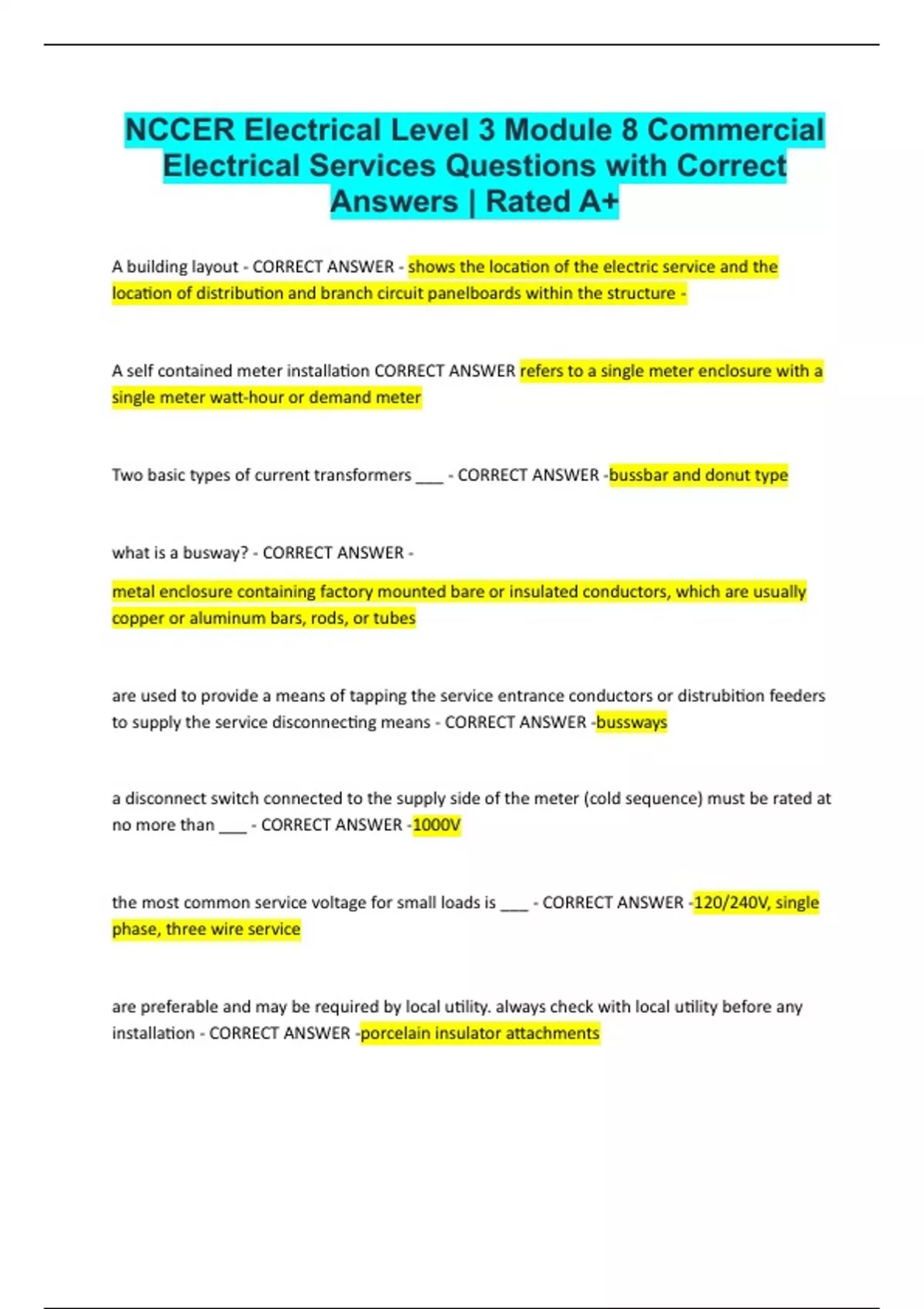 Electrical Services Questions with Correct