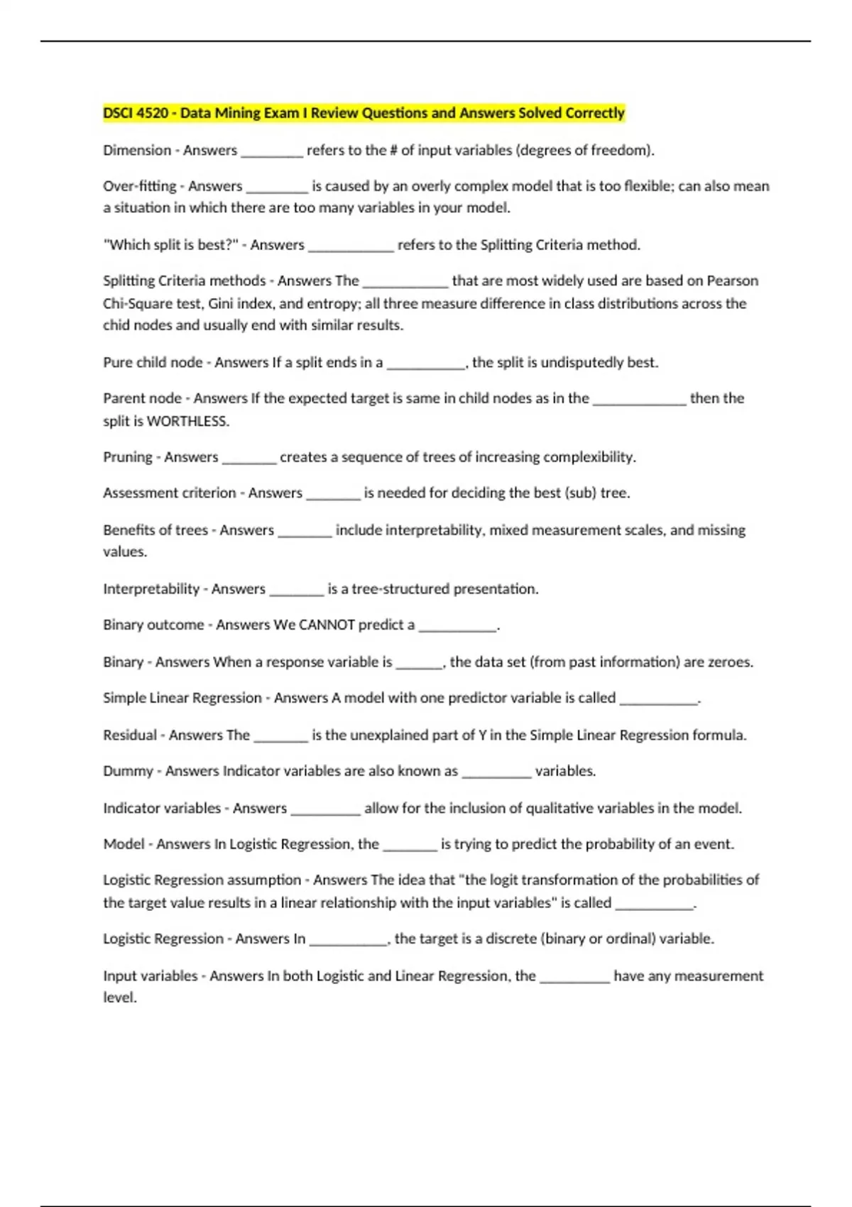 Over-fitting - Answers ________ is caused by an overly complex model that is too flexible; can also mean