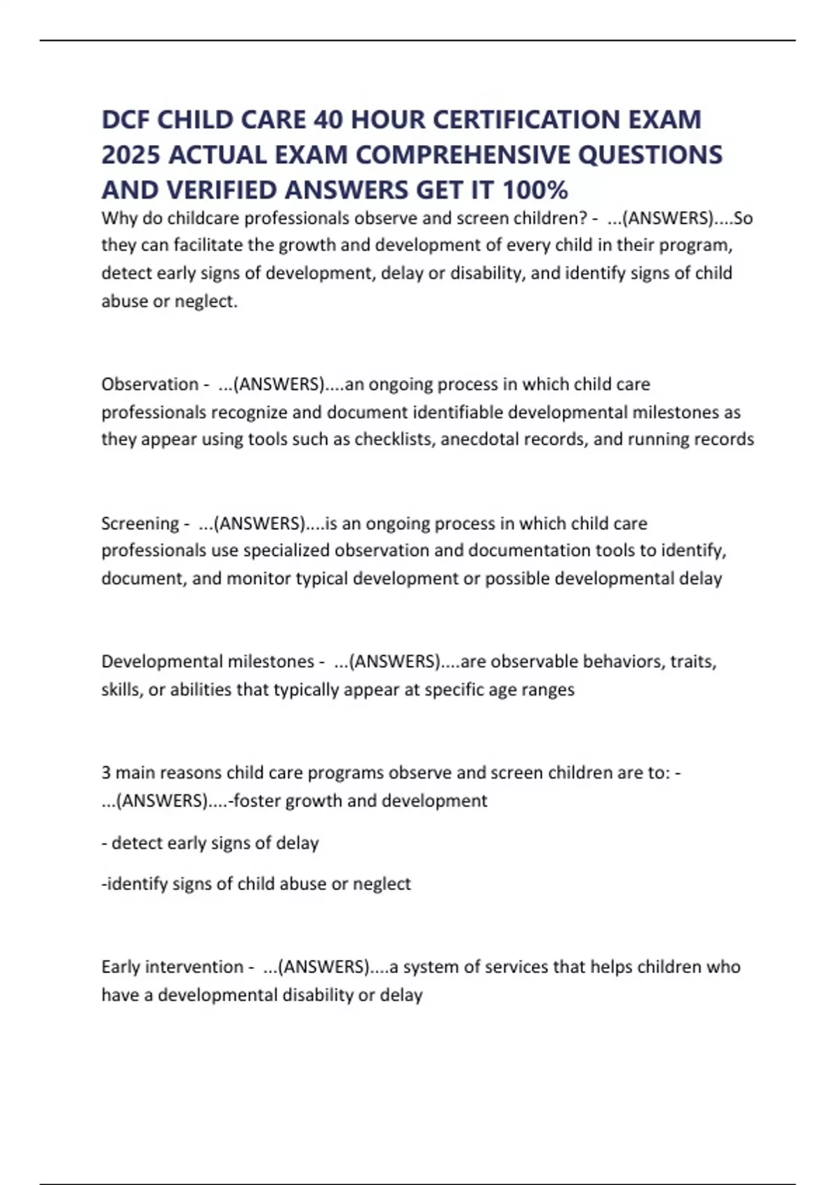 Why do childcare professionals observe and screen children? - ...(ANSWERS)....So
