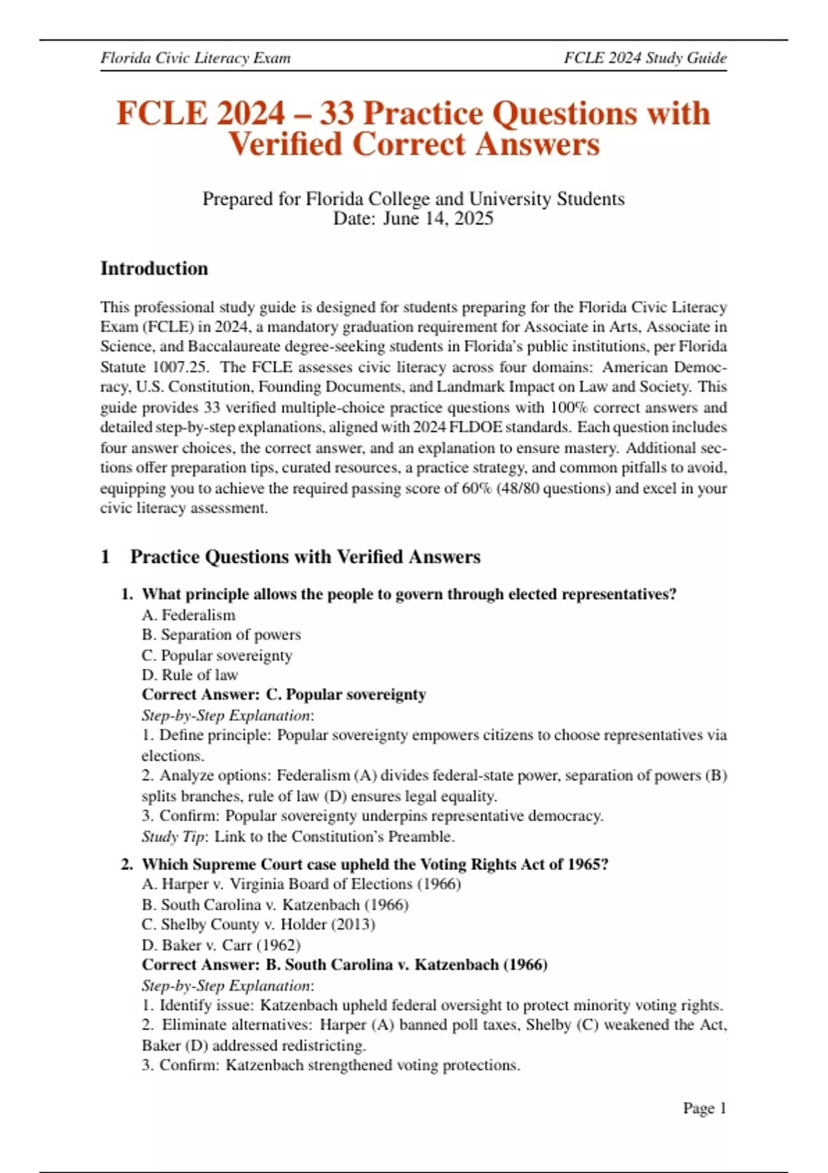 This professional study guide is designed for students preparing for the Florida Civic Literacy