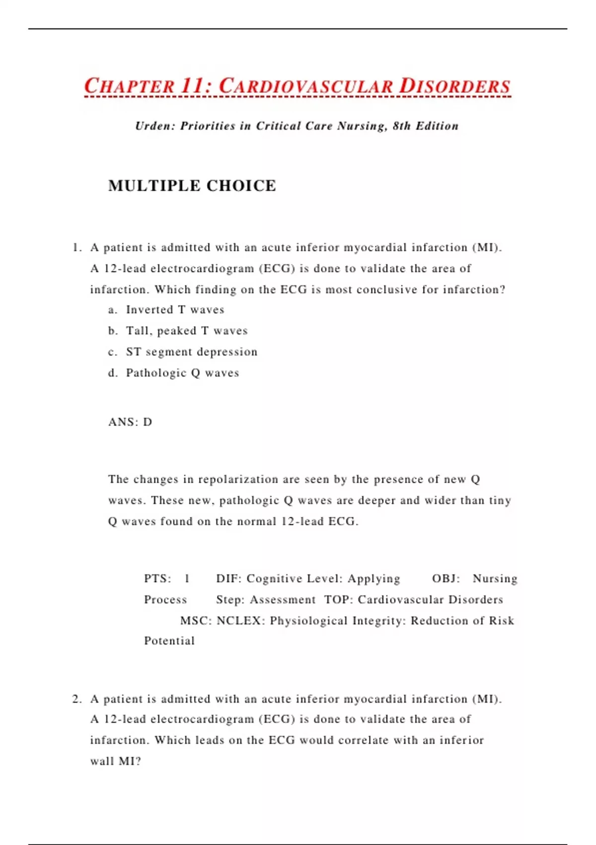 2. A patient is admitted with an acute inferior m yocardial infarction (MI).