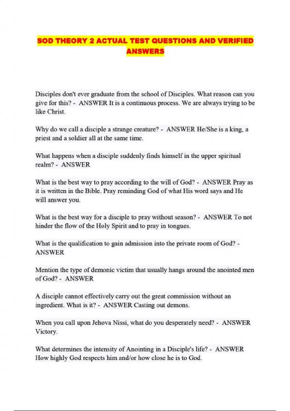 SOD THEORY 2 ACTUAL TEST QUESTIONS AND VERIFIED ANSWERS...