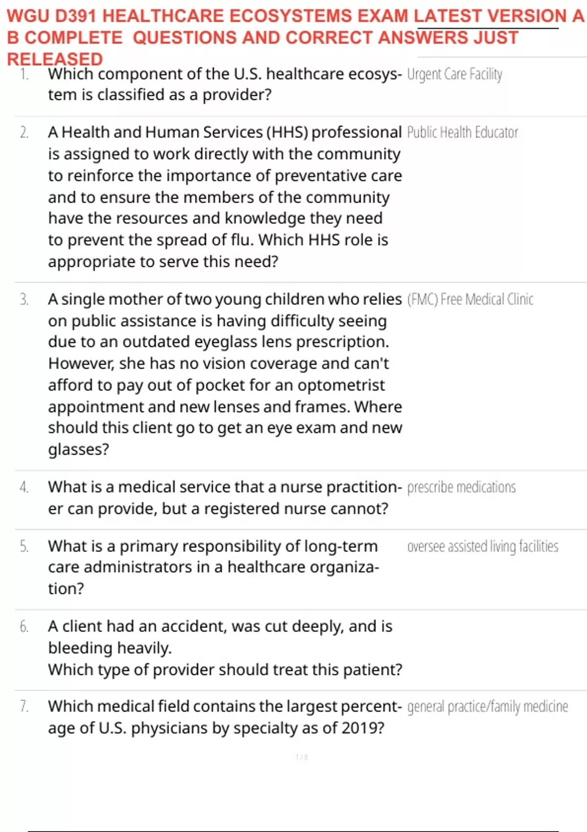 B COMPLETE QUESTIONS AND CORRECT ANSWERS JUST