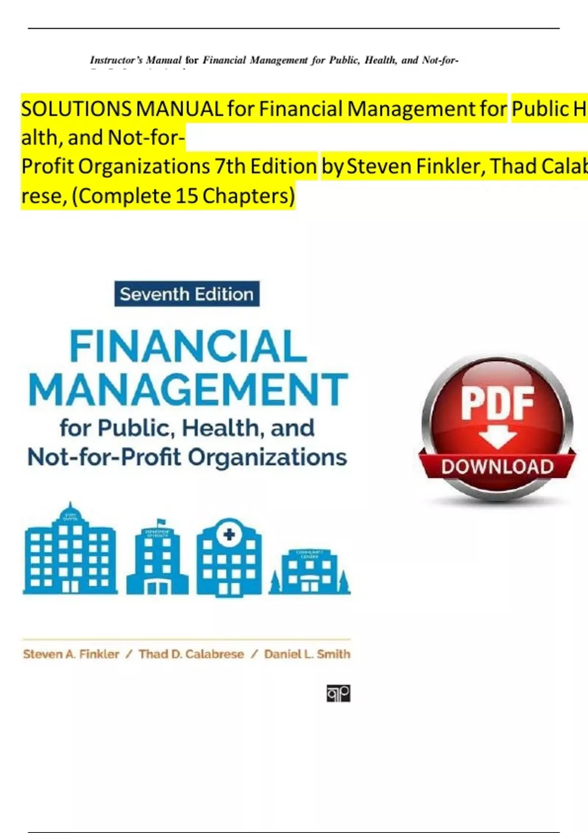 , Instructor’s Manual for Financial Management for Public, Health, and Not-for-