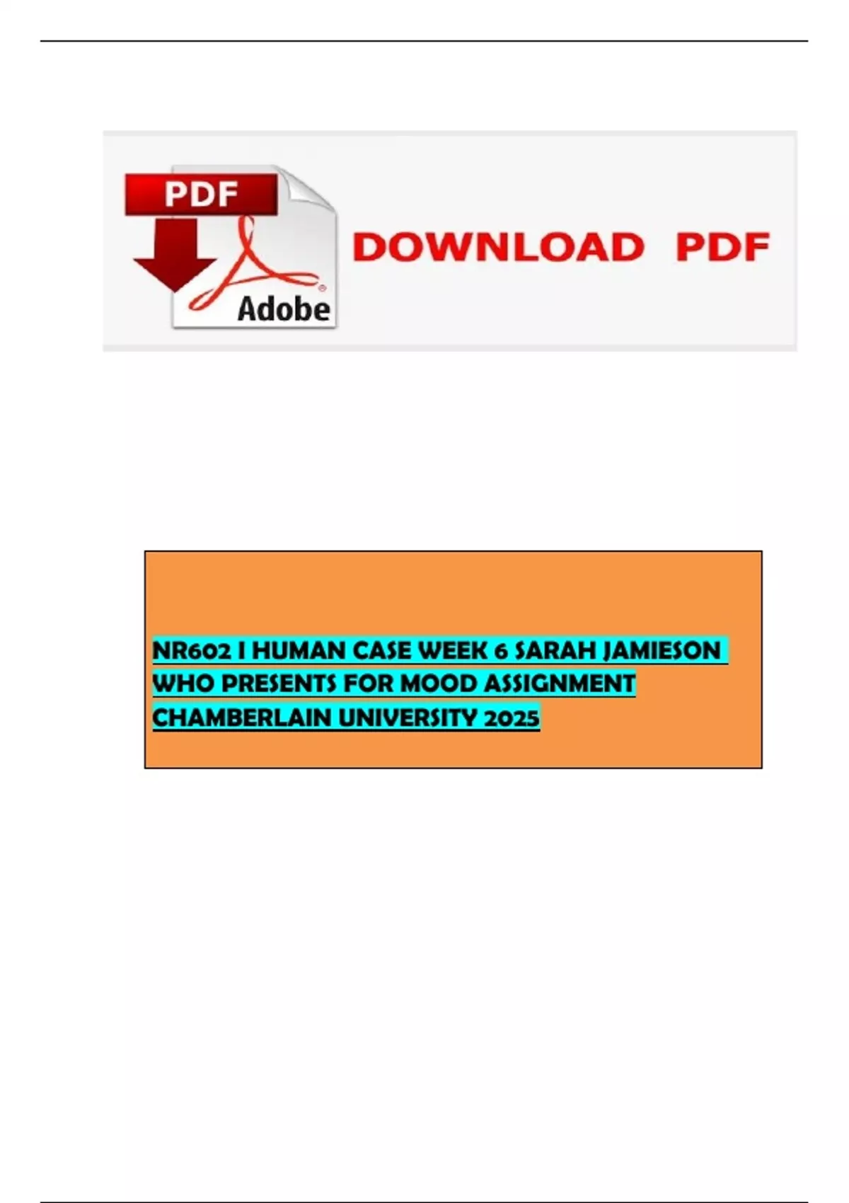 NR602 I HUMAN CASE WEEK 6 SARAH JAMIESON WHO PRESENTS FOR MOOD ASSIGNMENT CHAMBERLAIN UNIVERSITY 2025